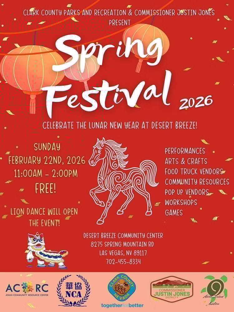Desert Breeze Community Center is presenting the 5th Annual Spring Festival, a one-day festival celebrating the Lunar New Year at Desert Breeze Community Center. This festival will take place on Sunday, February 22nd, 2026 from 11 a.m. to 2 p.m. Desert Breeze Community Center will be looking for participants in the following categories: Food and Pop Up vendors, Community Resources, and Asian inspired performances.