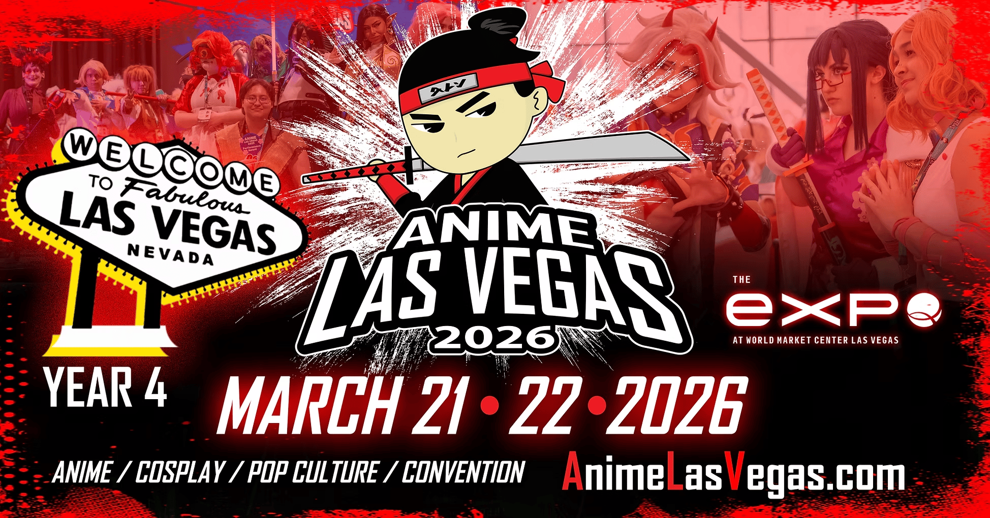 Join us March 21-22, 2026 at The Expo at World Market Center, just steps away from Downtown Las Vegas and the Fremont Experience, for our 4th Annual Anime Las Vegas — Nevada’s Largest Anime Convention!
